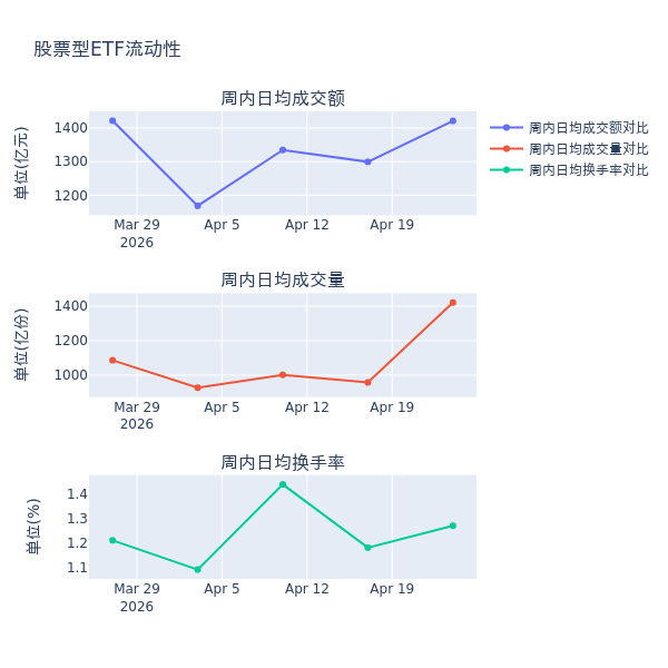 流动性方面,上周股票型ETF市场日均成交额增加9.4%,日均成交量增加48.4%,换手率增加0.09%。