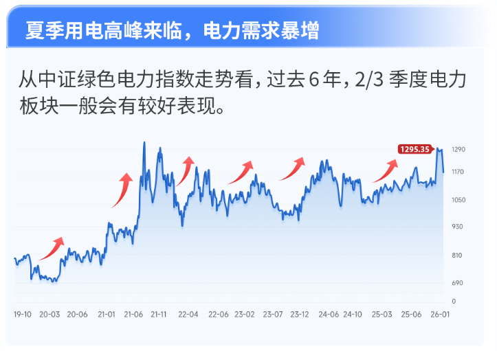 从中证绿色电力指数的走势看,过去6年,2-3季度电力板块一般会有较好的表现,投资者可借道绿电ETF(562550)一键布局。