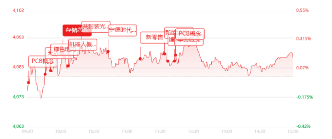 盘面上,盘面上热点快速轮动,全市场超3200只个股实现上涨,赚钱效应集中在科技成长赛道。芯片产业链全天强势爆发,华兴源创、格林达、万通发展、朗迪集团集体涨停,芯源微触及20CM涨停,长川科技涨超10%,股价创下历史新高;CPO概念震荡拉升,立讯精密触及涨停,股价刷新历史高点,铭普光磁封死涨停;PCB概念反复活跃,山东玻纤、景旺电子携手涨停;锂电产业链同步走强,西藏珠峰、维科技术双双斩获2连板。