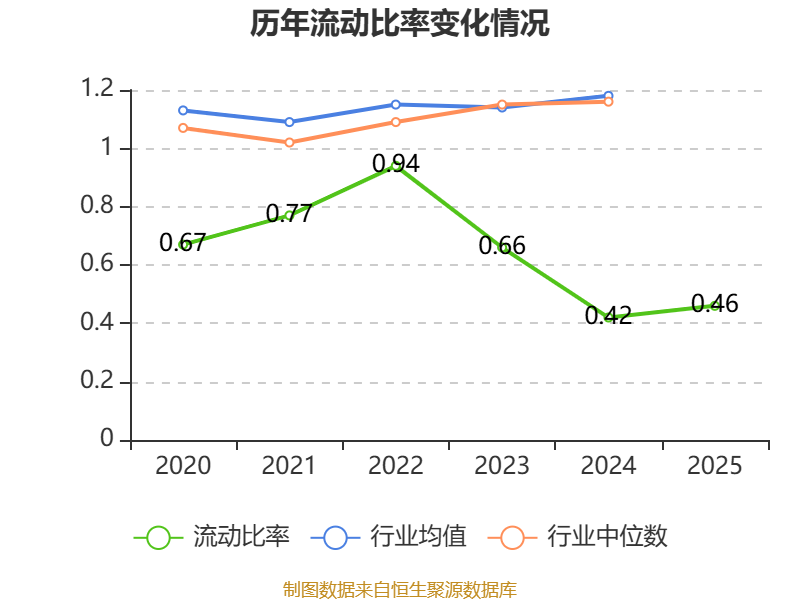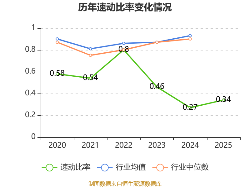 2025年,公司流动比率为0.46,速动比率为0.34。