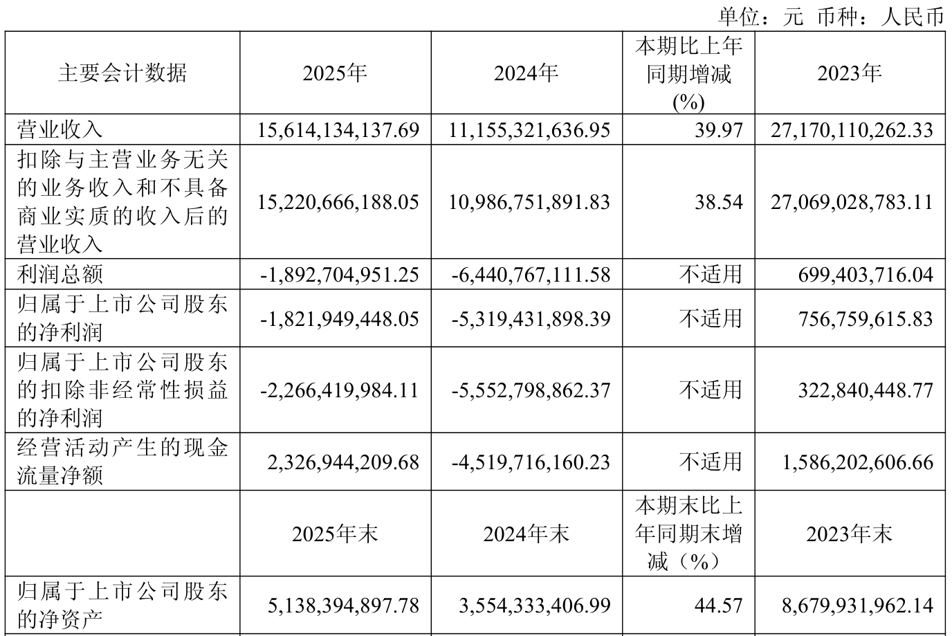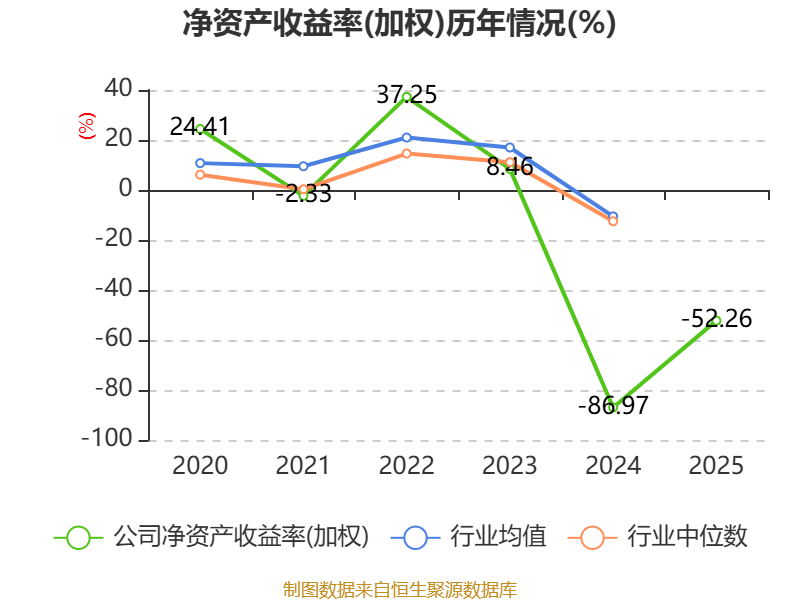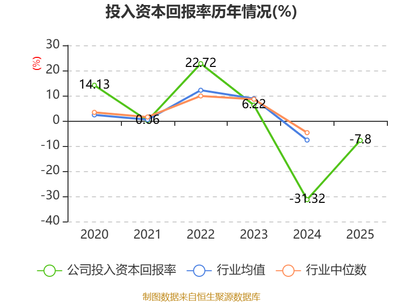 数据显示,2025年公司加权平均净资产收益率为-52.26%,较上年同期上升34.71个百分点。公司2025年投入资本回报率为-7.8%,较上年同期上升23.52个百分点。
