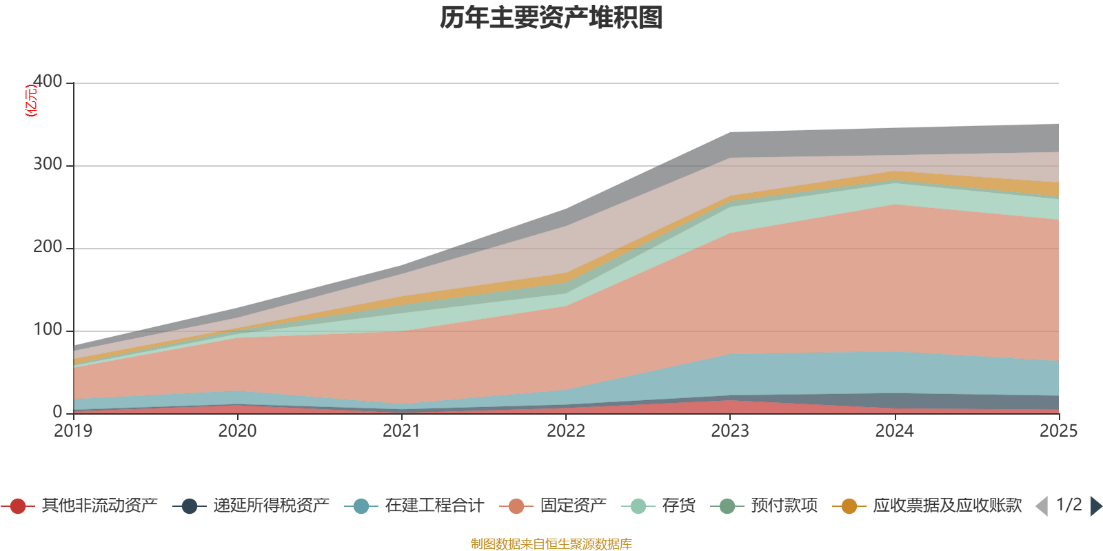 资产重大变化方面,截至2025年末,公司货币资金较上年末增加92.24%,占公司总资产比重上升4.97个百分点;固定资产较上年末减少4.06%,占公司总资产比重下降2.78个百分点;在建工程合计较上年末减少16.42%,占公司总资产比重下降2.57个百分点;应收票据及应收账款较上年末增加56.57%,占公司总资产比重上升1.71个百分点。