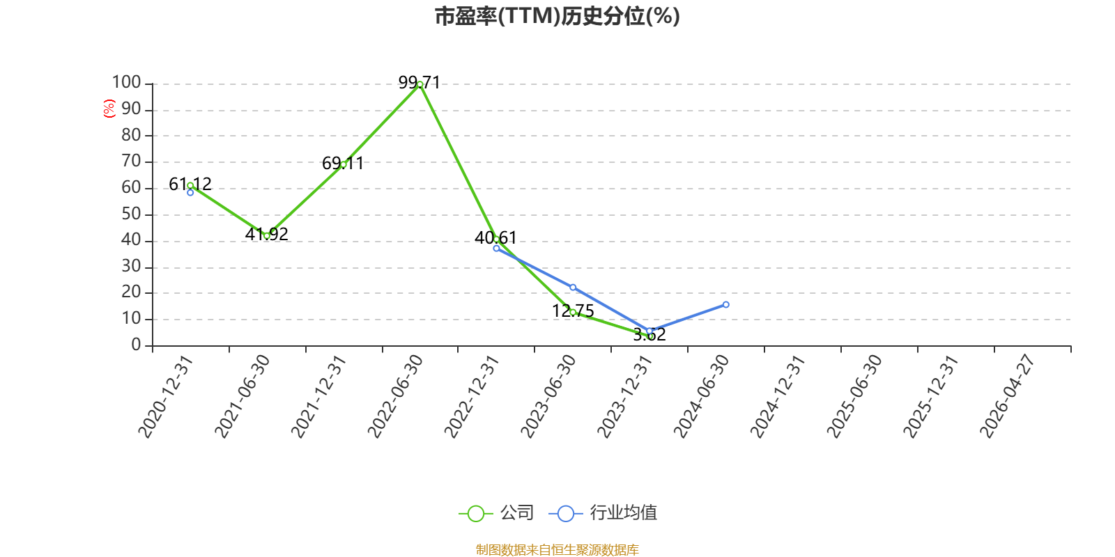 市盈率、市净率为负时,不显示当期分位数,会导致折线图中断。