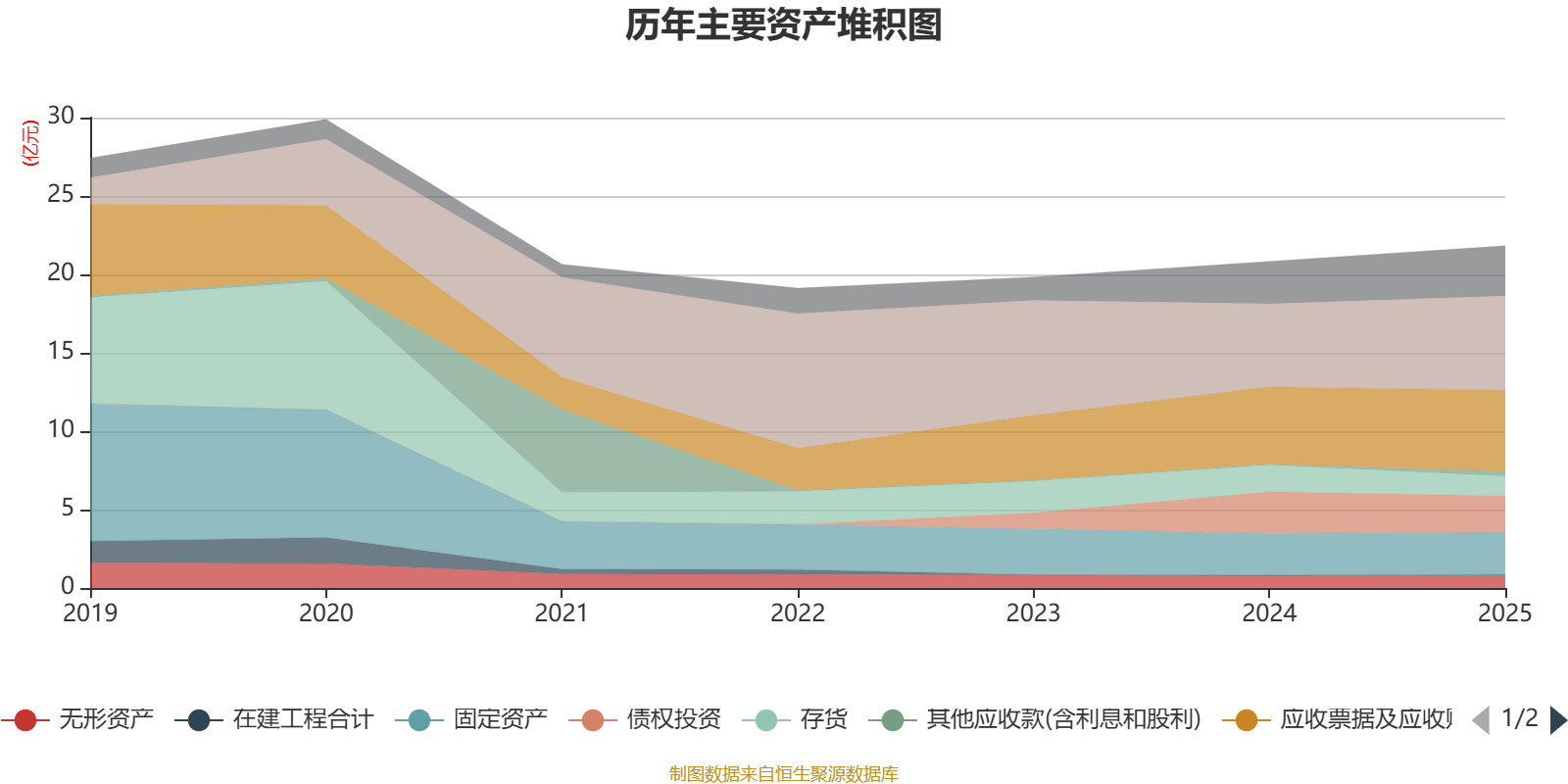 资产重大变化方面,截至2025年末,公司存货较上年末减少26.52%,占公司总资产比重下降2.45个百分点;债权投资较上年末减少13.92%,占公司总资产比重下降2.29个百分点;货币资金较上年末增加13.63%,占公司总资产比重上升2.14个百分点;其他应收款(含利息和股利)较上年末增加506.92%,占公司总资产比重上升1.14个百分点。