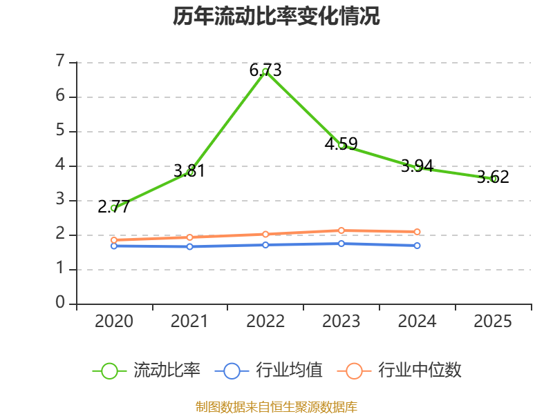 2025年,公司流动比率为3.62,速动比率为3.3。