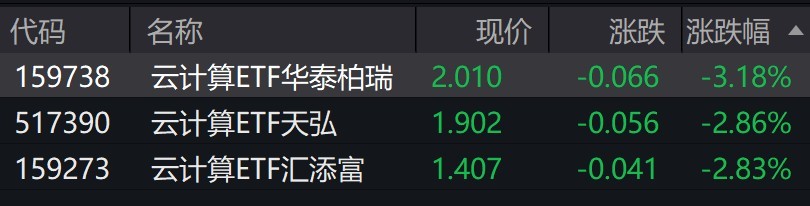 受盘面影响,云计算相关ETF跌约3%。