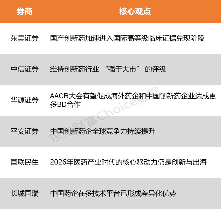东吴证券表示,东吴证券指出,2026年ASCO年会中国创新药表现从“数量爆发”迈向“质量突破”,12家企业的13项研究入选LBA(最新突破摘要),创历史新高。中信证券指出,伴随ASCO 大会摘要陆续披露及临床数据持续落地,国内创新药产业有望迎来管线价值验证与估值修复,维持创新药行业“强于大市” 的评级。