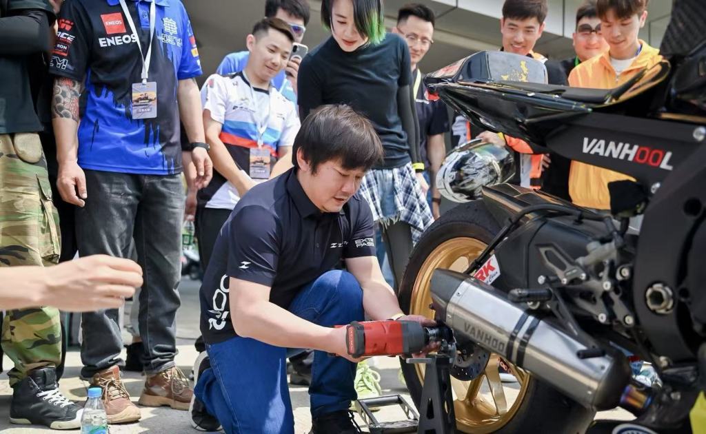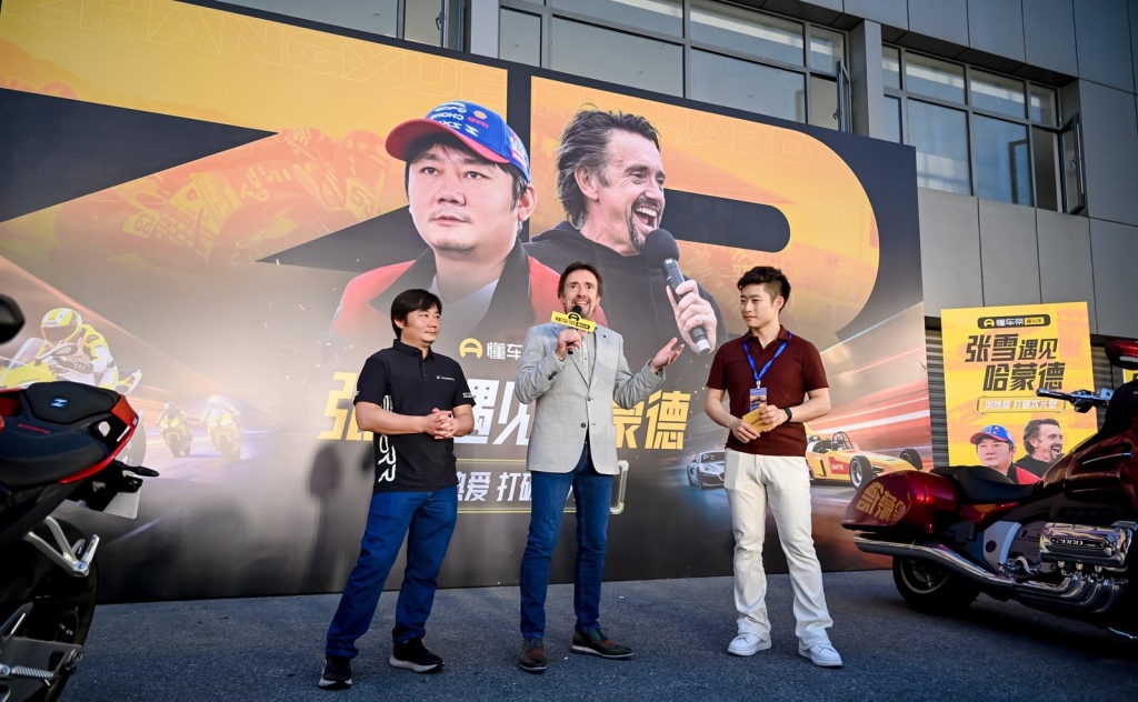 红白双色的摩托车、一排排整齐头盔、灼热日光下剧烈轰鸣声,4月27日傍晚时分,在上海天马赛车场,张雪(张雪机车创始人)与英国知名汽车节目《Top Gear》主持人理查德·哈蒙德(Richard Hammond)展开一场对谈,该活动由懂车帝趣玩车策划,现场拥满了热情的摩托车爱好者和观众。