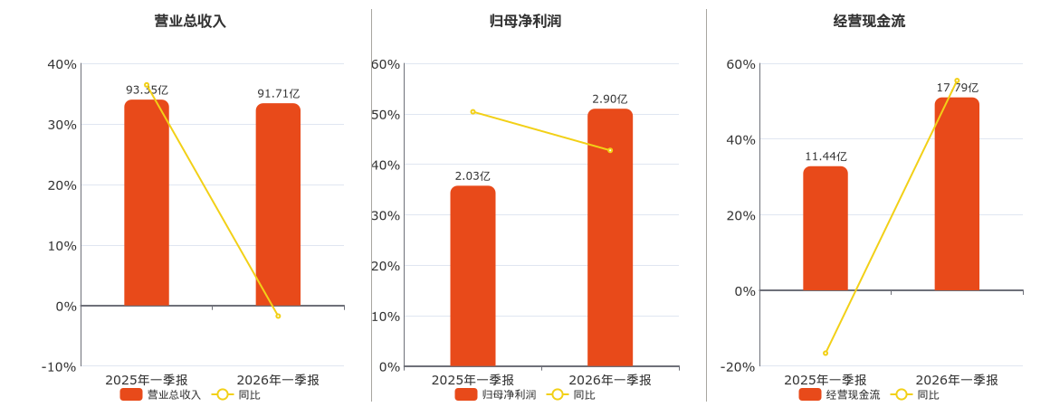公司营业总收入为91.71亿元,在已披露的同业公司中排名第2。归母净利润为2.90亿元,在已披露的同业公司中排名第14,较去年同报告期归母净利润增加8690.92万元,实现3年连续上涨,同比较去年同期上涨42.74%。经营活动现金净流入为17.79亿元,在已披露的同业公司中排名第1,较去年同报告期经营活动现金净流入增加6.34亿元,同比较去年同期上涨55.44%。
