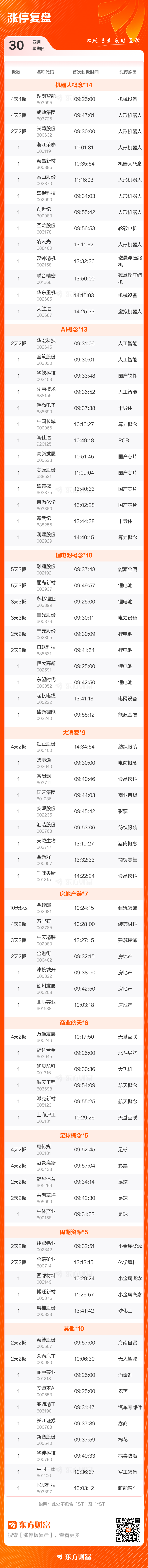 4月30日涨停复盘:98只股涨停 越剑智能4连板