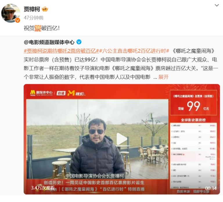 《流浪地球》系列导演郭帆转发此消息祝贺:小哪吒,继续冲!