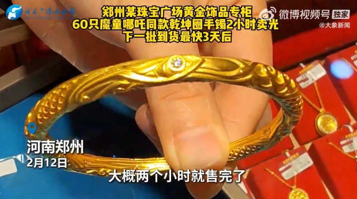 据大象新闻,近日,金价持续上涨,加之《哪吒2》热映,郑州黄金饰品专柜的哪吒同款“乾坤圈”手镯热销。