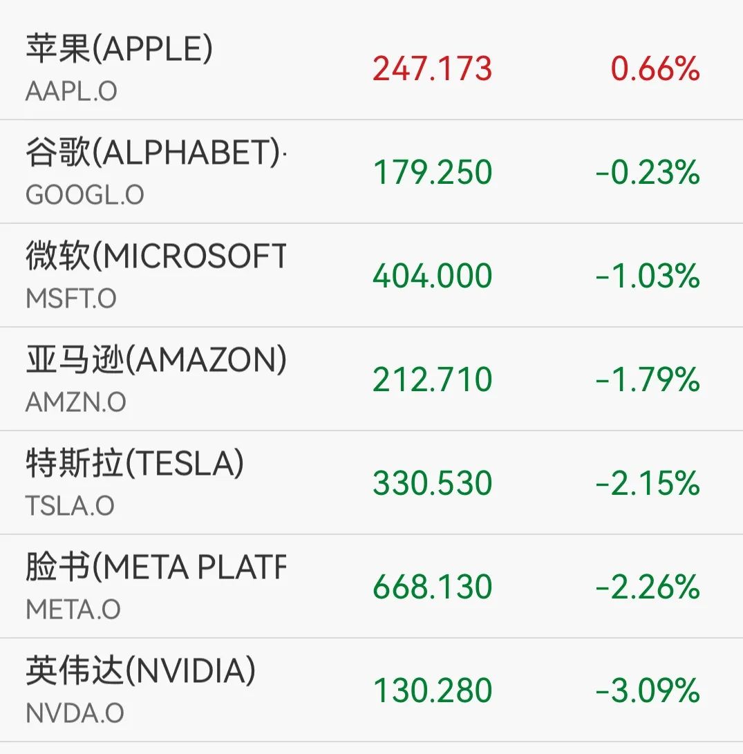 美东时间2月24日,大型科技股多数下跌,英伟达跌超3%,特斯拉、Meta跌超2%,亚马逊、微软跌超1%,仅苹果微涨。