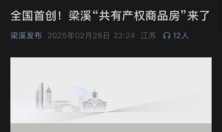 梁溪发布称首创“共有产权商品房”试点政策
