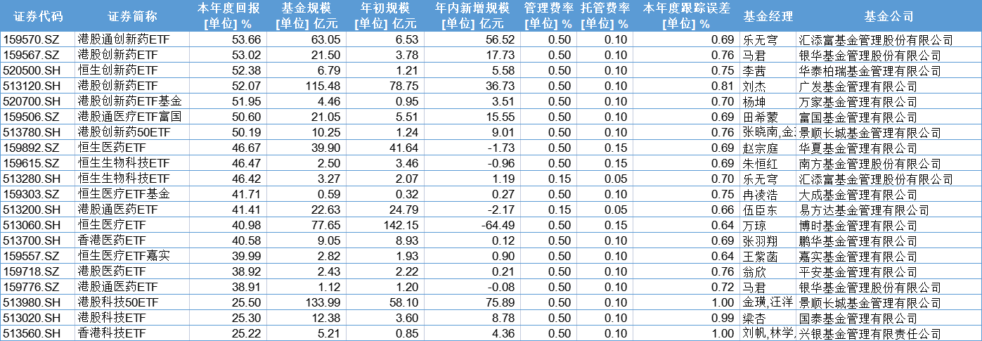 2025年港股ETF年内回报排行榜
