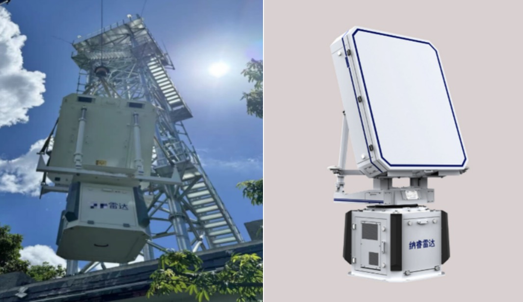 图片:粤财金融租赁官网文章雷达安装照片(揭阳市惠来县气象站)与纳睿雷达官网AXPT0464型雷达产品(右图)对比