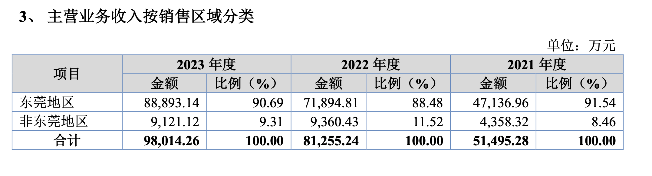东实环境主要收入来自东莞地区。 图片来源:招股书截图