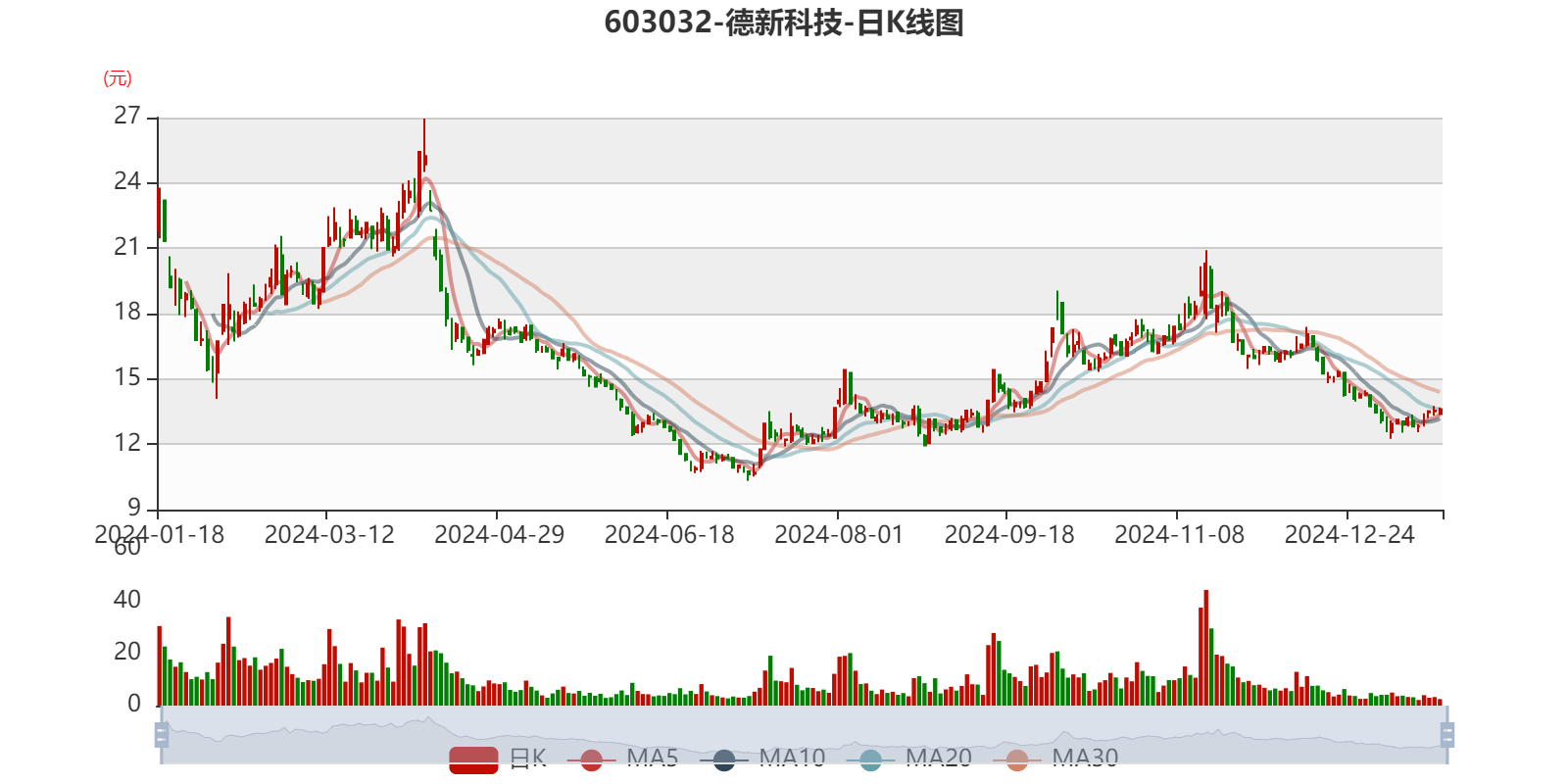 中证智能财讯德新科技(603032)1月17日晚间披露2024年度业绩预告,预计2024年实现营业收入3.1亿元至3.75亿元;归母净利润亏损1.3亿元至1.7亿元,上年同期盈利1.08亿元;扣非净利润亏损1.55亿元至1.95亿元,上年同期盈利1.22亿元。以1月17日收盘价计算,德新科技目前市盈率(TTM)约为-18.74倍至-24.5倍,市净率(LF)约2.51倍,市销率(TTM)约9.3倍。
