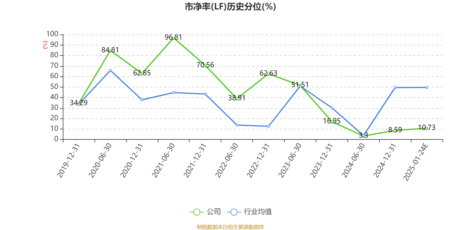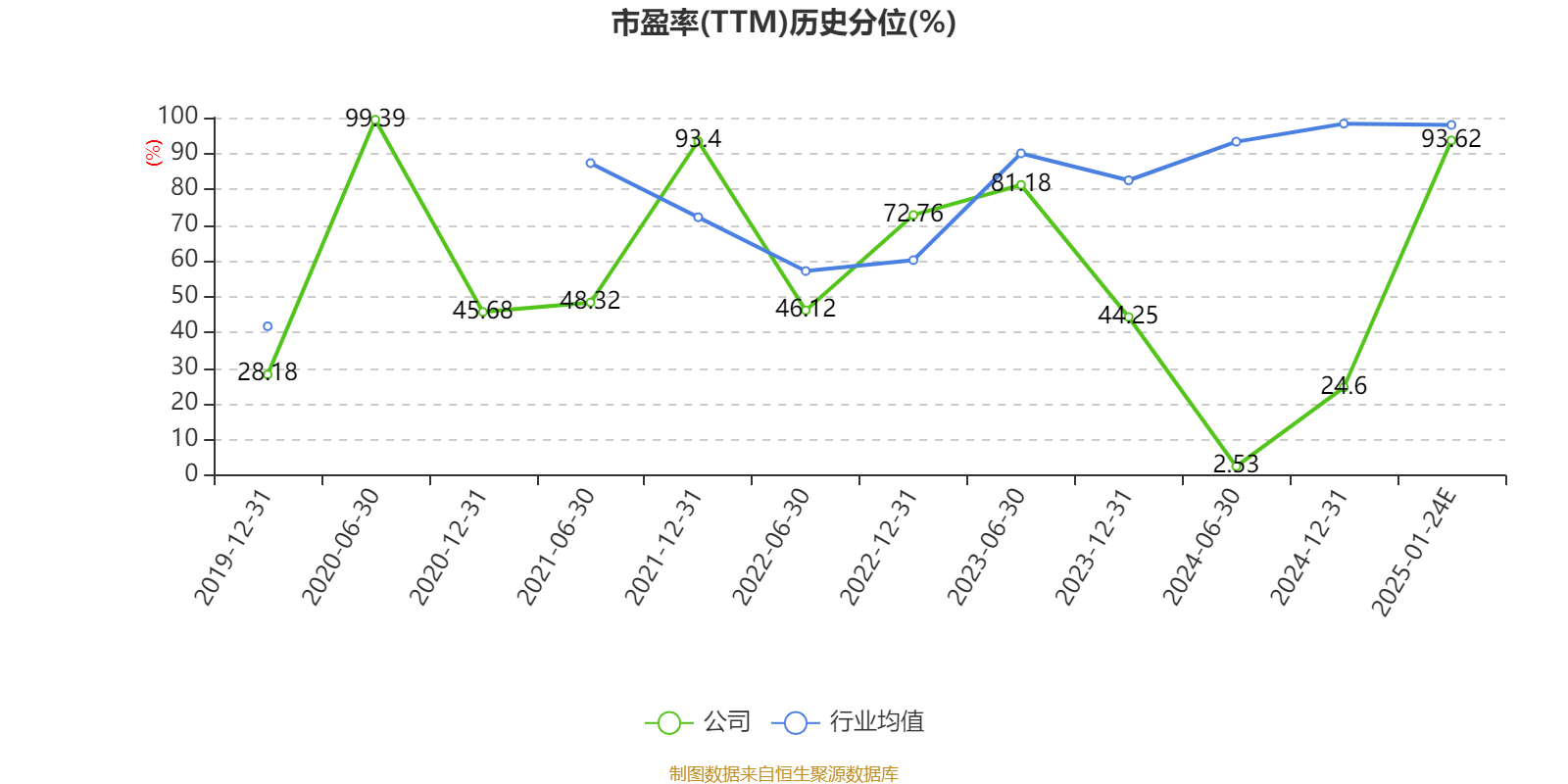 市盈率、市净率为负时,不显示当期分位数,会导致折线图中断。