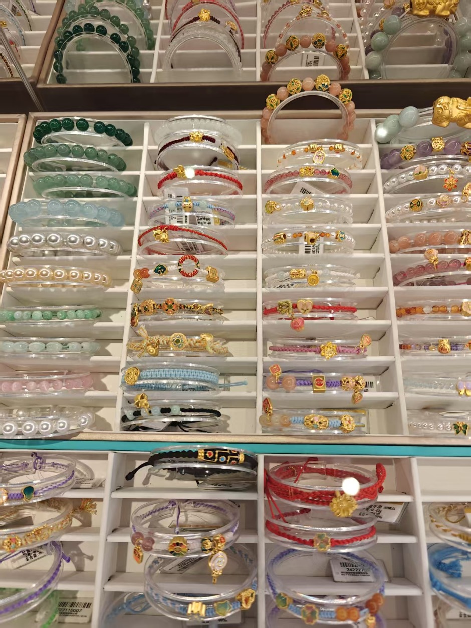 虽然黄金编绳手链在大罗珠宝城一直有之,但在金价高位时期,这类产品或较以往更受欢迎。