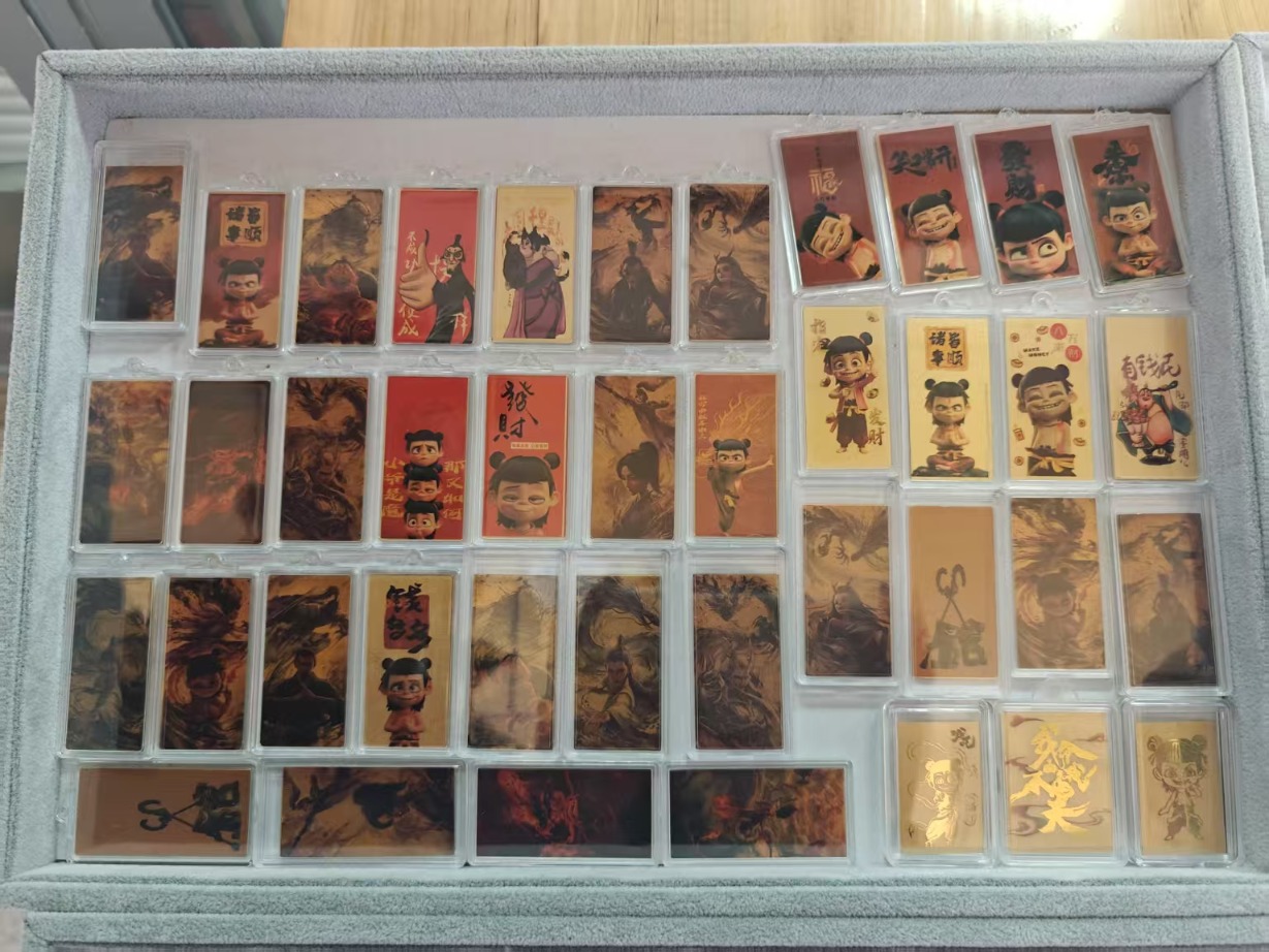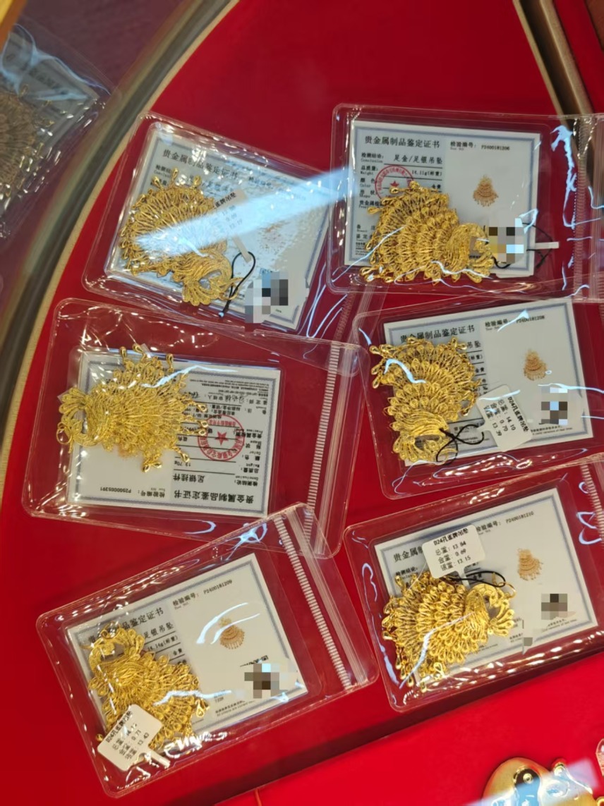 “这个可以做手机贴,也可以做书签,纯金打造,小的38元1个,大的58元1个,你看这个最流行的哪吒、敖丙,多买几个还有优惠。”一位黄金店铺店员给顾客介绍到,这些小物件从2024年底开始在市场流行。