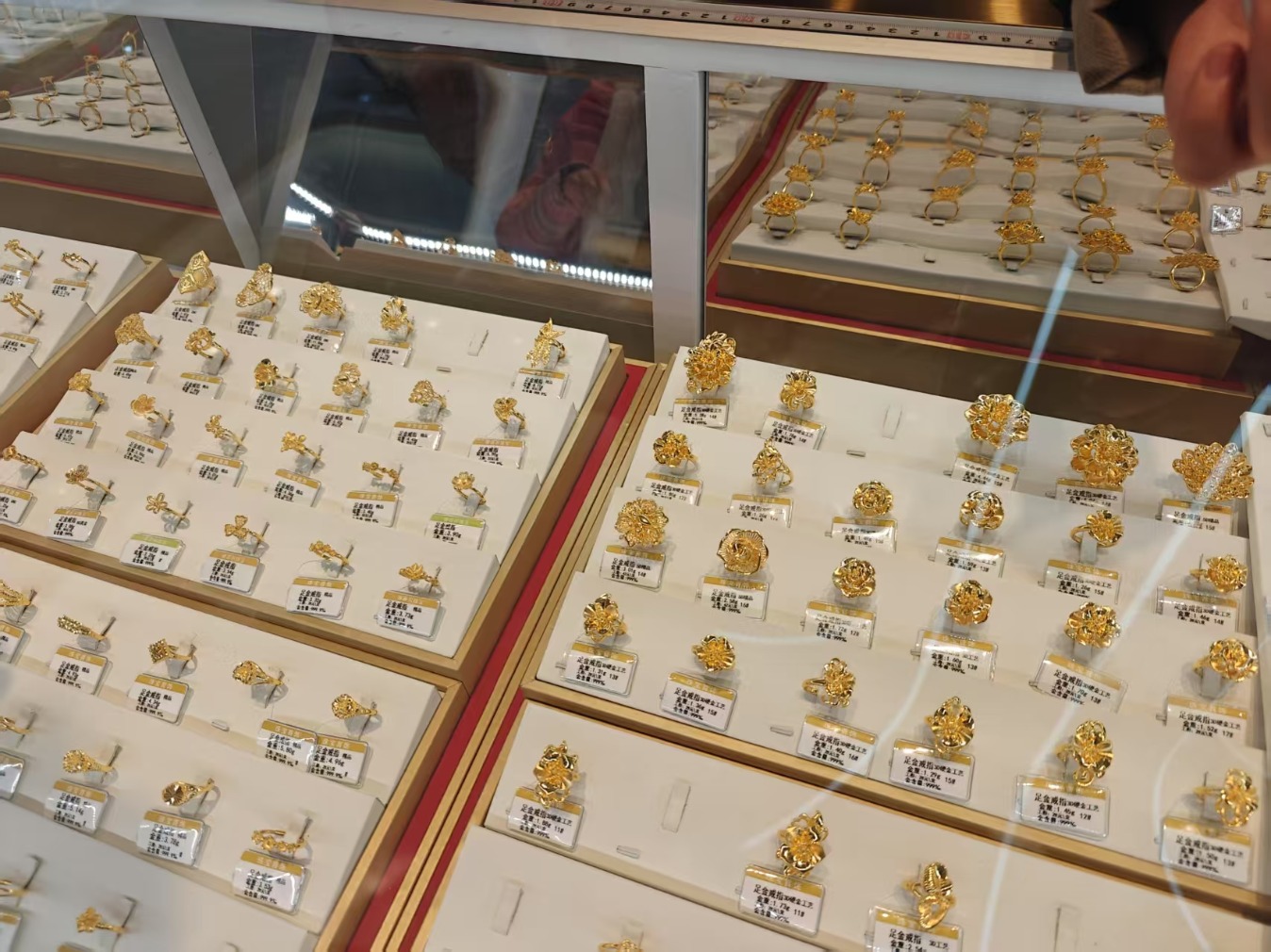 比如深圳水贝,这里是全国最大的黄金批发市场,其黄金产品按照“大盘价(国际金价)+工费”定价。因为金价透明且实时对标国际市场,工费明显低于品牌金店,让追求性价比的消费者不断涌进。