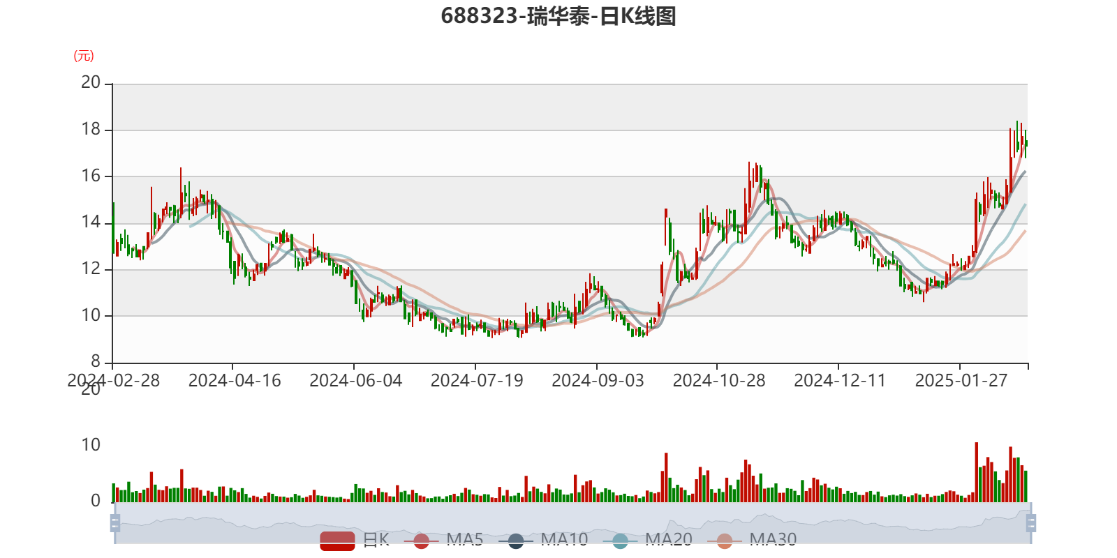中证智能财讯瑞华泰(688323)2月27日晚间披露2024年业绩快报,公司实现营业收入3.39亿元,同比增长22.88%;归母净利润亏损5727.49万元,上年同期亏损1960.3万元;扣非净利润亏损5767.15万元,上年同期亏损2188.8万元;基本每股收益-0.32元,加权平均净资产收益率为-5.9%。以最新收盘价计算,市净率(LF)约3.77倍,市销率(TTM)约10.17倍。