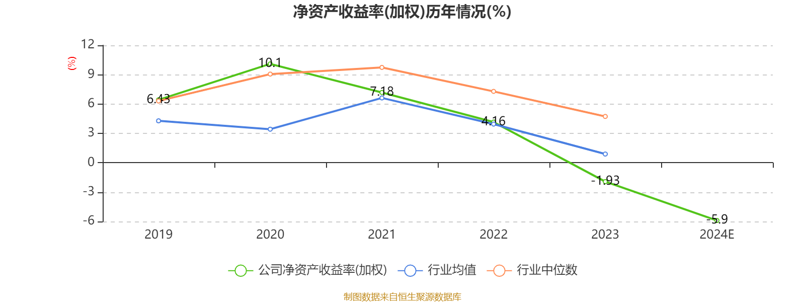数据显示,2024年公司加权平均净资产收益率为-5.9%,较上年同期下降3.97个百分点。