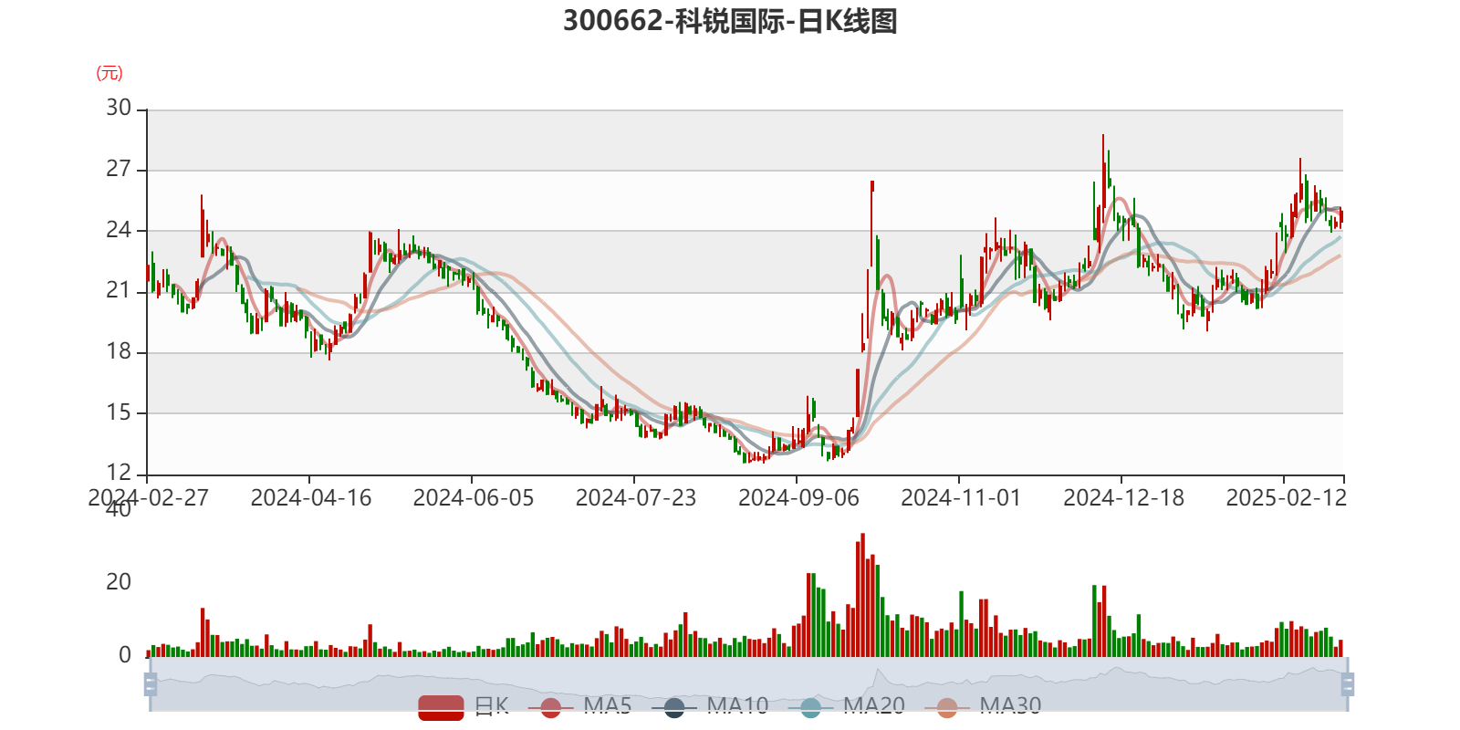 中证智能财讯科锐国际(300662)2月27日晚间披露2024年业绩快报,公司实现营业收入117.93亿元,同比增长20.6%;归母净利润2.04亿元,同比增长1.5%;扣非净利润1.37亿元,同比增长2.1%;基本每股收益1.0341元,加权平均净资产收益率为10.79%。以2月27日收盘价计算,科锐国际目前市盈率(TTM)约为24.15倍,市净率(LF)约2.56倍,市销率(TTM)约0.44倍。