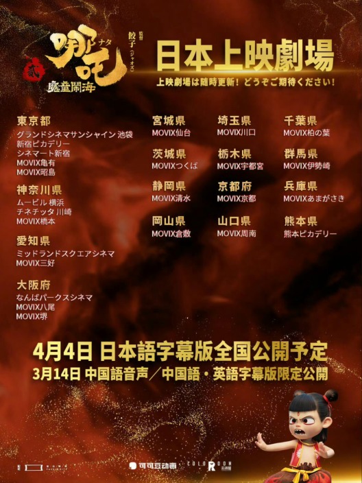 此外,据悉,3月14日《哪吒2》将在日本限定上映原版及原版英语字幕版,4月4日公开上映日语字幕版。