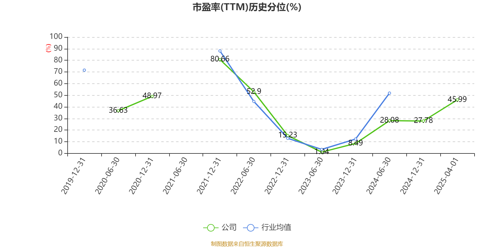 市盈率、市净率为负时,不显示当期分位数,会导致折线图中断。