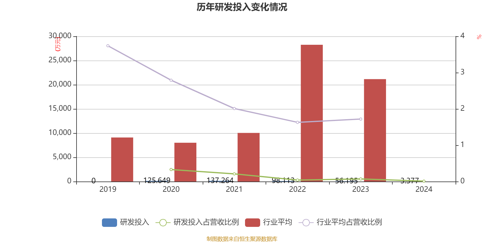 2024年全年,公司研发投入金额为3.38万元,同比下降93.99%;研发投入占营业收入比例为0.01%,相比上年同期下降0.06个百分点。此外,公司全年研发投入资本化率为0%。