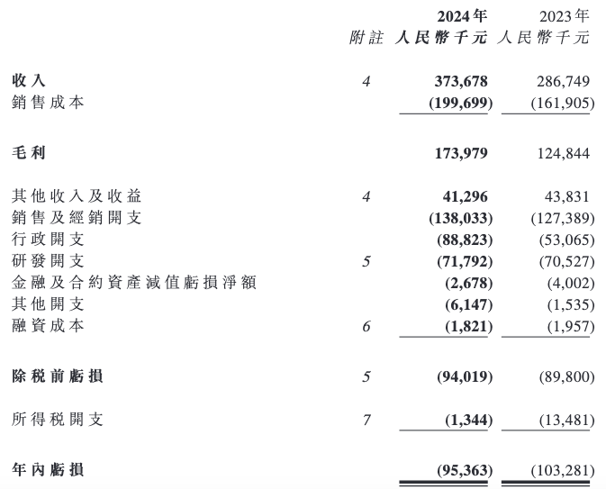 越疆科技2024年毛利为1.74亿元,较上年同期的1.25亿元增长39.4%;2024年毛利率为46.6%。